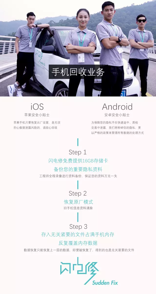 閃電修隱私安全保障三部曲,輕松搞定隱私備份,數(shù)據(jù)清除。在手機(jī)回收業(yè)務(wù)上閃電修提供的服務(wù)是行業(yè)中最完善的!